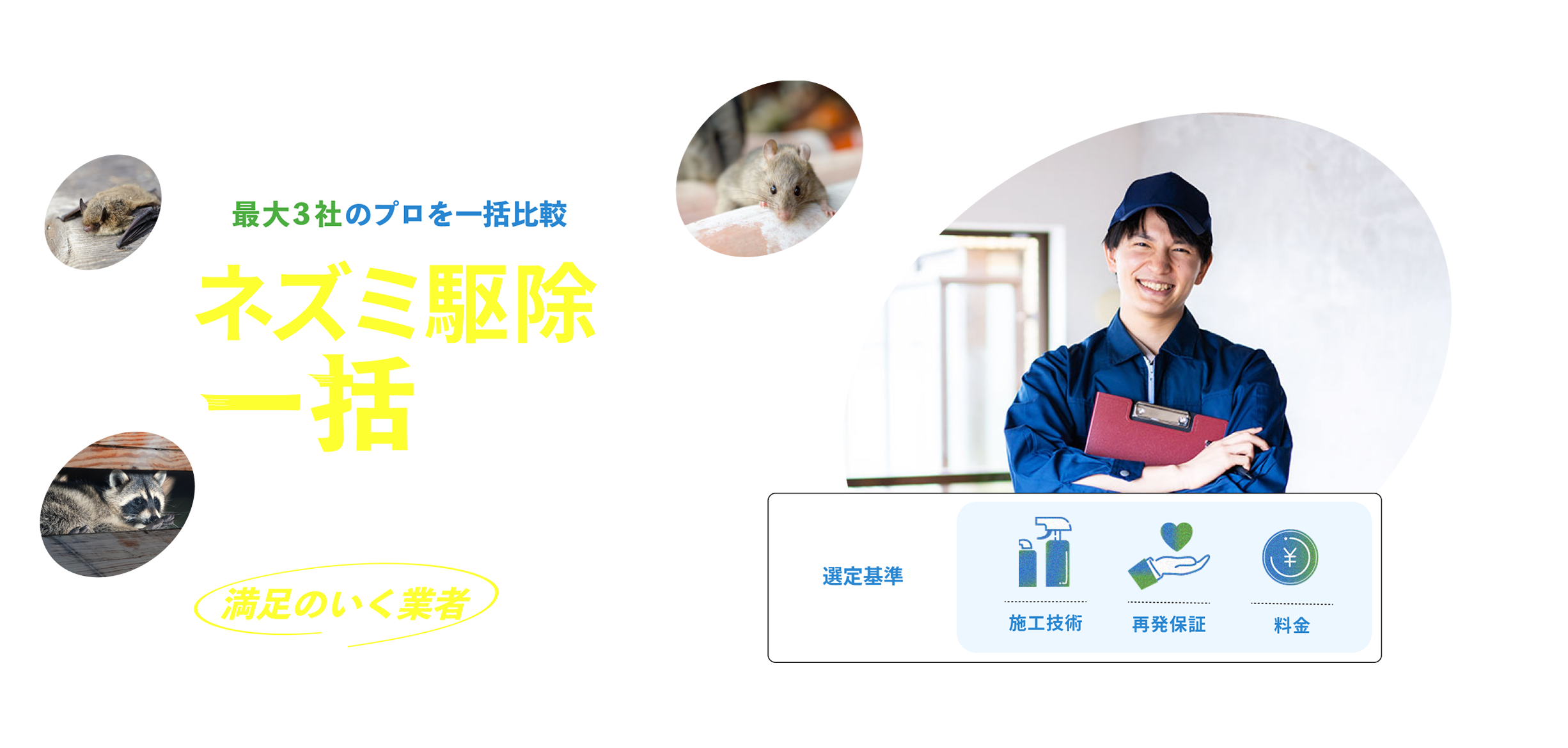 駆除プロ.netでは、厳選された優良業者だけに、 一括でネズミ駆除の見積りを依頼できます。